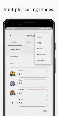 - Scoring modes that fit most games (highest, lowest, manual, coop, no points, solo, tiebreakers)