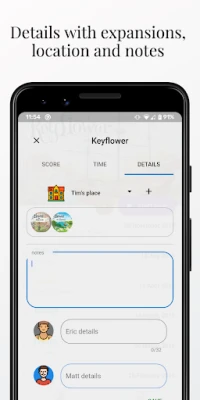 - Tracking board game plays (time, score, expansions played, notes, teams/roles, location)