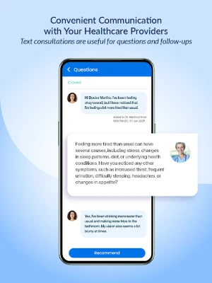 • Text Consultations: Have a question about your medication or some symptoms that are troubling you? Ask your healthcare providers what you need to know. Attach photos or test reports.