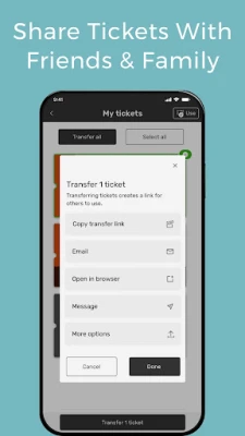 SHARE TICKETS WITH FRIENDS & FAMILY Easily transfer tickets to friends or family with a text or email.