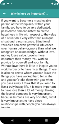 What truly distinguishes our app is its offline availability, ensuring that the profound wisdom on love is accessible to you anytime, anywhere. In moments of solitude or when seeking inspiration, the Importance Love in Life app becomes your reliable companion, offering a wealth of knowledge even without an internet connection.