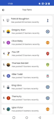 Leaderboard Glory And Football Influencer: Climb the ranks of our Top Fans leaderboard by actively participating in Banters. Show your dedication and knowledge about clubs like Arsenal and Manchester United, and earn your place among the elite fans.