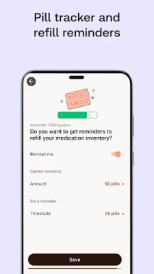 🛒 Pill counter and refill alert: Our health app's pill counter monitors your stock and sends a prescription reminder when it’s time to refill.