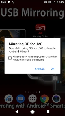 It is a mirroring application that can display the screen of your Android smartphone on the JVC car AV receiver. Operation is possible with the touch panel of the car AV which connected with USB.
