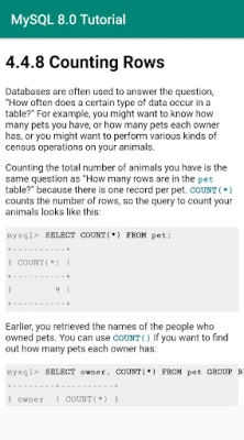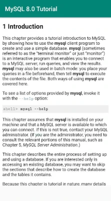 This is a free, offline MySQL 8.0 tutorial app sourced from its official documentation.