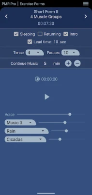 Set your preferred duration of tension and relaxation between the muscle groups.