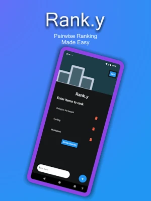 Rank.y is a simple yet powerful tool that helps you decide what matters most. Instead of juggling a long list of tasks or ideas all at once, Rank.y guides you through pairwise comparisons—asking which of two items you prefer—until you arrive at a clear, final ranking.