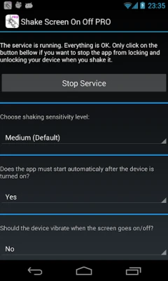 This is the PRO version of the app 'Shake to Screen On Off'. On the PRO version: