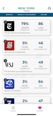 Social Rankings is the daily social media scoreboard for newsrooms and news industry talent. Use Social Rankings to track a daily updated social ranking report of the top performing news organizations, talent, and content in each of 200+ markets. See who's winning and who's losing. Analyze which posts garnered the most engagement both locally and nationally. To win you must first know the score!