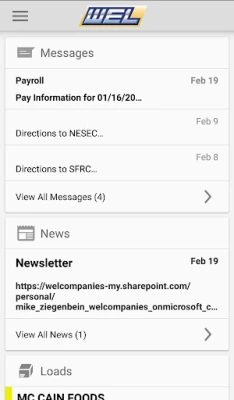 The WEL Companies Mobile application was designed with our driving associates, in mind. You can do many things with this app: view load and stop detail, view maps, send & receive messages, scan & send documents, view news, report safety issues, and more anywhere you happen to be.